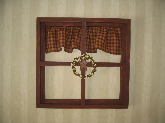 Window with curtain and berry wreath hanger on back $26.00
